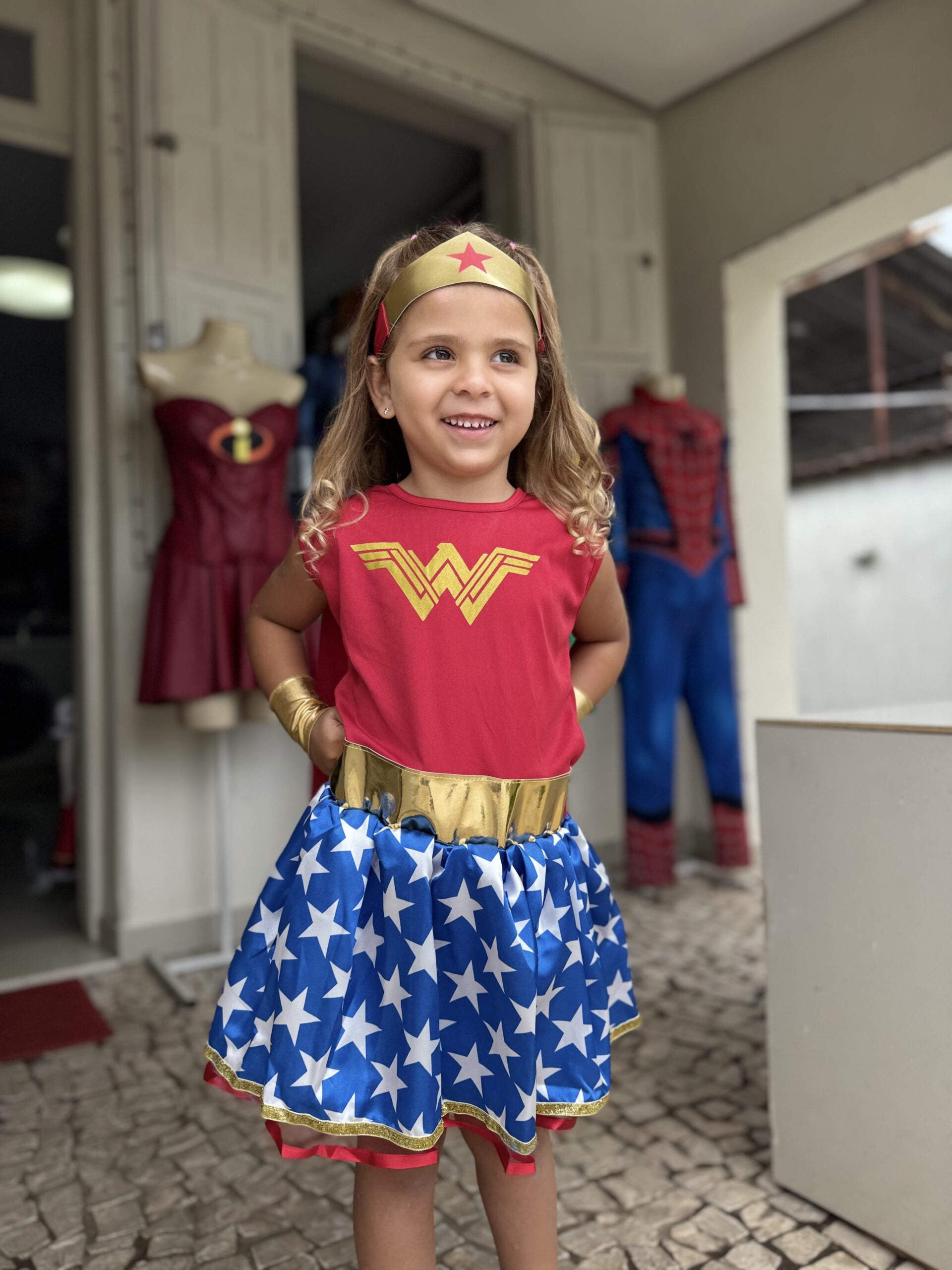 Vestido colorido com chifre e asas